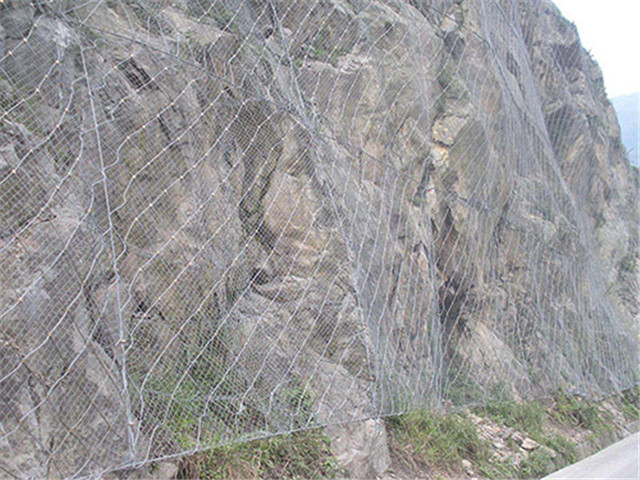 SNS邊坡防護(hù)網(wǎng)系統(tǒng)的常用規(guī)格:[鋼柱(間距10M),帶消能環(huán)的∮16雙支撐繩和∮16"人"字形上拉錨繩(每跨6個消能環(huán)),∮16側(cè)拉錨繩(單繩),◇/08/200/4*5㎡鋼絲繩網(wǎng),縫合繩,格柵網(wǎng)。 材質(zhì):鋼絲繩網(wǎng)、普通鋼絲格柵(常稱鐵絲格柵)和TECCO高強(qiáng)度鋼絲格柵 。構(gòu)造:前兩者通過鋼絲繩錨桿和/或支撐繩固定方式,后者通過鋼筋(可施加預(yù)應(yīng)力)和/或鋼絲繩錨桿(有邊沿支撐繩時采用)、專用錨墊板以及必要時的邊沿支撐繩等固定方式 。產(chǎn)品特性:SNS邊坡防護(hù)網(wǎng)作用原理上類似于噴錨和土釘墻等面層護(hù)坡體系,但因其柔性特征能使系統(tǒng)將局部集中荷載向四周均材質(zhì):鋼絲繩網(wǎng)、普通鋼絲格柵(常稱鐵絲格柵)和TECCO高強(qiáng)度鋼絲格柵 勻傳遞以充分發(fā)揮整個系統(tǒng)的防護(hù)能力,即局部受載,整體作用,從而使系統(tǒng)能承受較大的荷載并降低單根錨桿的錨固力要求 。被動防護(hù)系統(tǒng):材質(zhì):鋼絲繩網(wǎng)、支撐繩和減壓環(huán),構(gòu)造:由鋼絲繩網(wǎng)或環(huán)形網(wǎng)(需攔截小塊落石時附加一層鐵絲格柵)、固定系統(tǒng)(錨桿、攔錨繩、基座和支撐繩)、減壓環(huán)和鋼柱四個主要部分構(gòu)成。